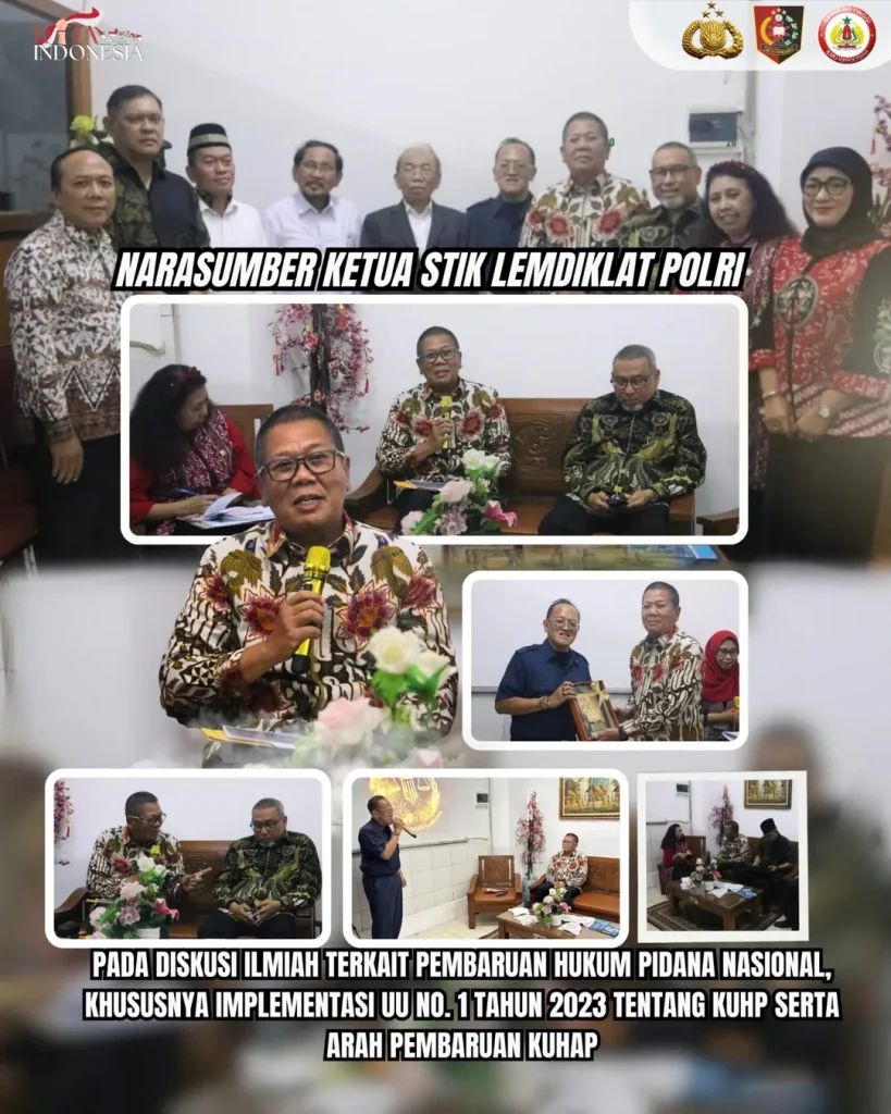 Ketua STIK Lemdiklat Polri Irjen Pol. Dr. Eko Rudi Sudarto, S.I.K., M.Si. hadir sebagai narasumber dalam Diskusi Ilmiah mengenai pembaruan hukum pidana nasional, dengan fokus pada implementasi Undang-Undang Nomor 1 Tahun 2023 tentang Kitab Undang-Undang Hukum Pidana (KUHP) serta arah pembaruan Kitab Undang-Undang Hukum Acara Pidana (KUHAP). Kegiatan ini menjadi ruang akademik penting untuk memperkuat pemahaman bersama mengenai transformasi sistem peradilan pidana Indonesia yang lebih modern, berkeadilan, dan responsif terhadap dinamika masyarakat.